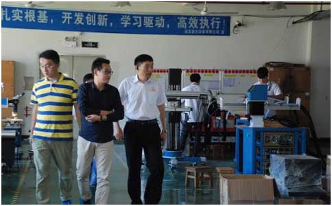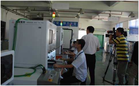 在鳳凰衛視的杜編導熱情的訪問后,通發激光副董事長王小峰帶領杜編導以及他的同事參觀生產車間,樣品車間,研發車間,了解通發生產的激光焊接機、激光打標機等。