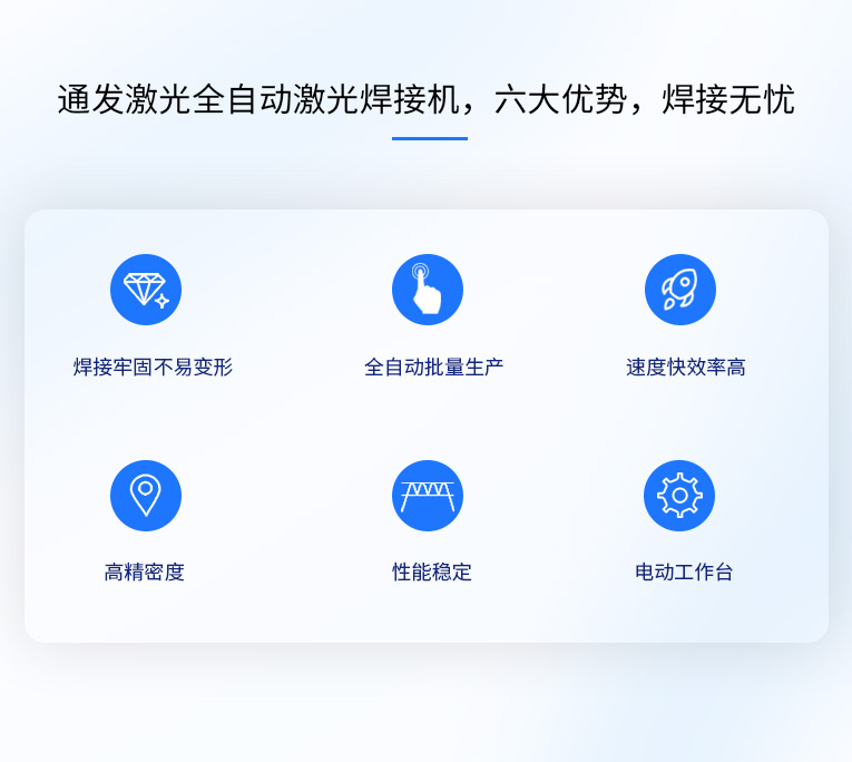 通發激光TFL-180VI小五金全自動激光焊接機,廣泛適用手機五金激光焊接,不銹鋼螺柱激光焊接,各種小五金的激光焊接加工。采用精密運動控制器和精密XY工作臺,可實現大多數0.5mm以內料厚五金產品的二維平面焊接。效率高,性能穩定,性價比高。